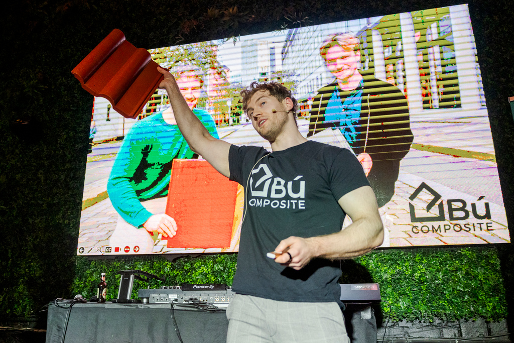 Bú Composite: Innovativ bruk av resirkulert glassfiber og termoplast fra gamle vindturbiner, båter og utedoer til lette og bærekraftige byggematerialer, hvor 99 % er resirkulert, blant annet til takstein.